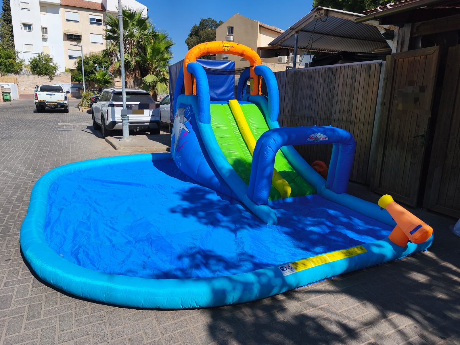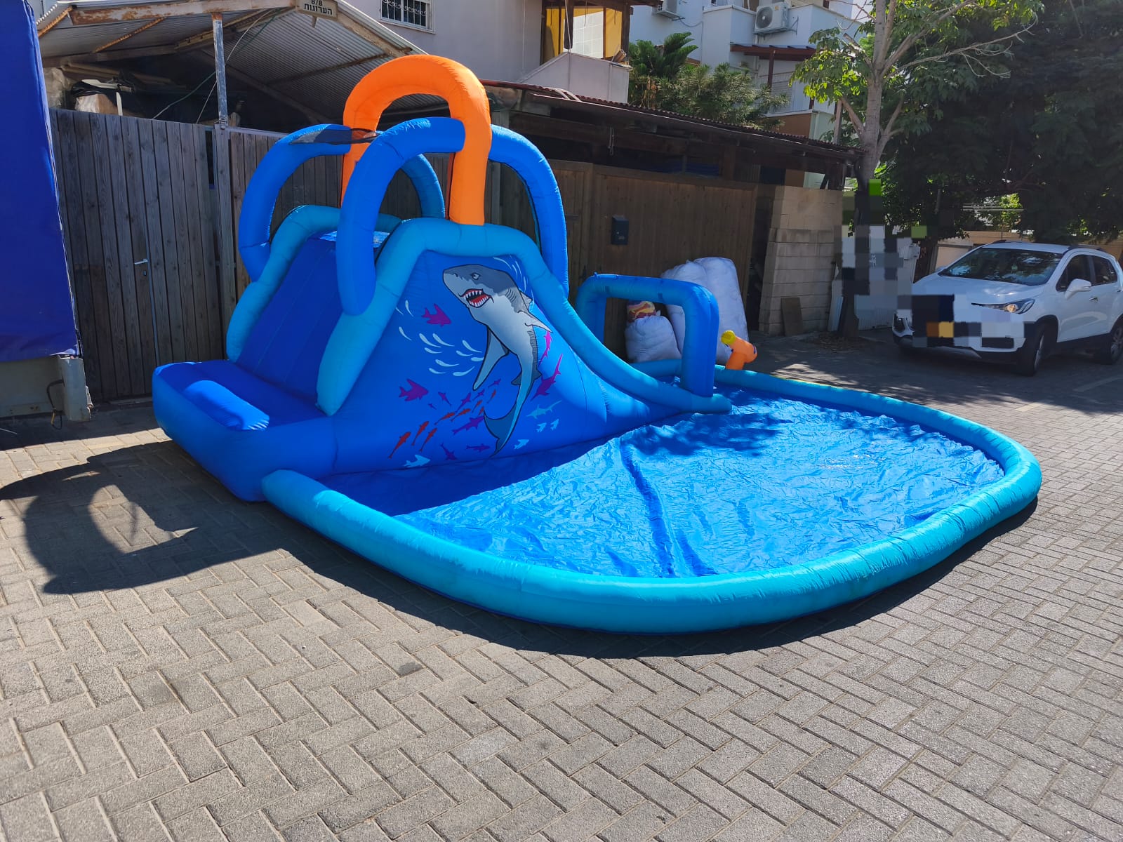 - המתקן כולל : מתנפח פארק כריש מגלשה כפולה , בריכת שכשיוכית גדולה.
