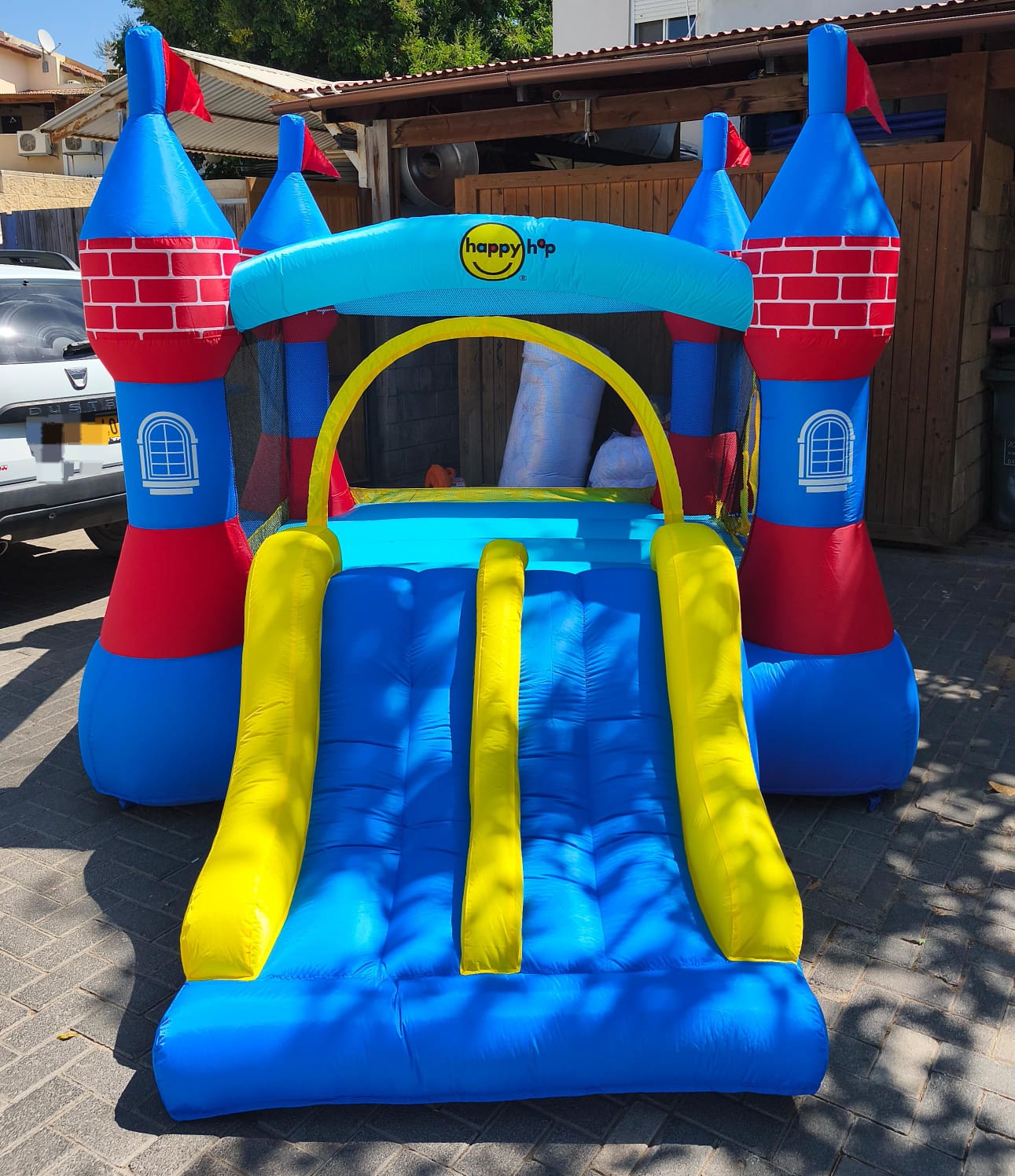 - המתקן כולל : מתנפח טירה עם מגלשה כפולה