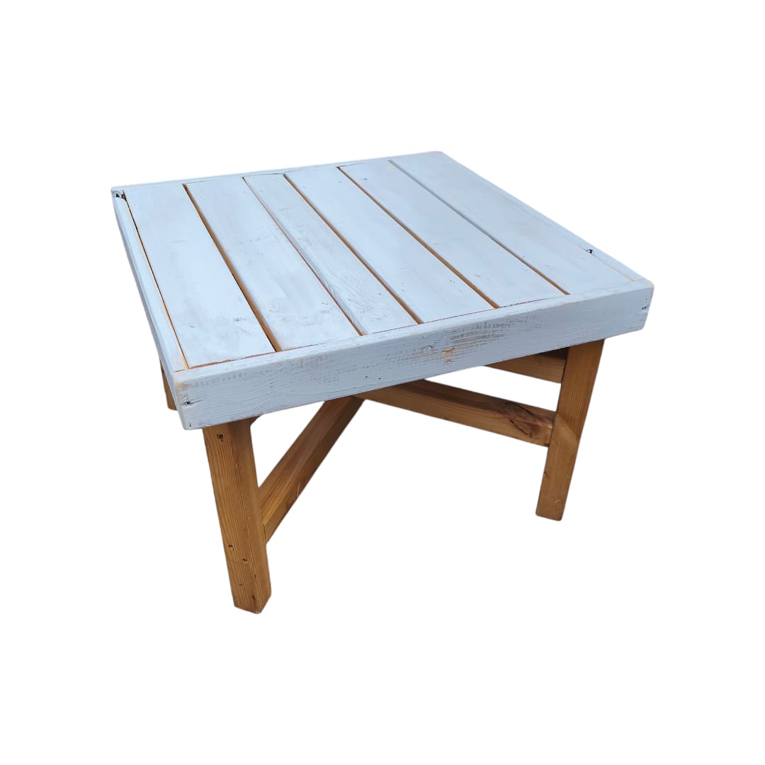 • שולחן עץ פלטה עליונה לבנה רגליים עץ טבעי